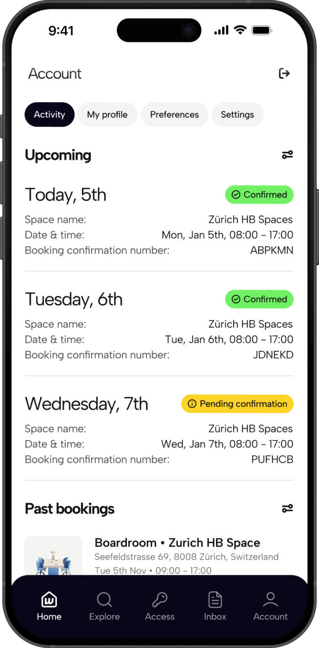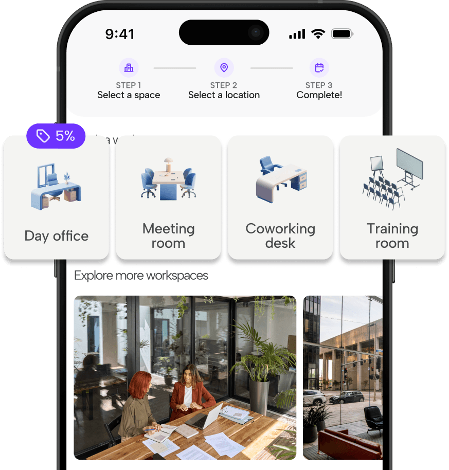 Access thousands of day offices, meeting rooms, desks, and training spaces worldwide. All in one app. Whether you’re working locally or internationally, your workspace is already there.